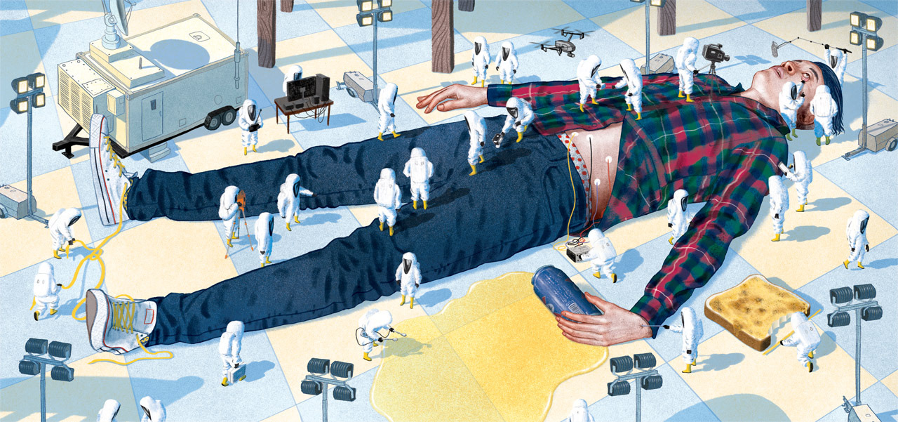 For a story in the New Scientist about hangovers. Since it’s a British publication I have his drunk food of choice as cheesy toast and a can of Kronenburg1664. Made a version with the eye looking over in case I looked too dead (Neon Genesis Evangelion vibes).