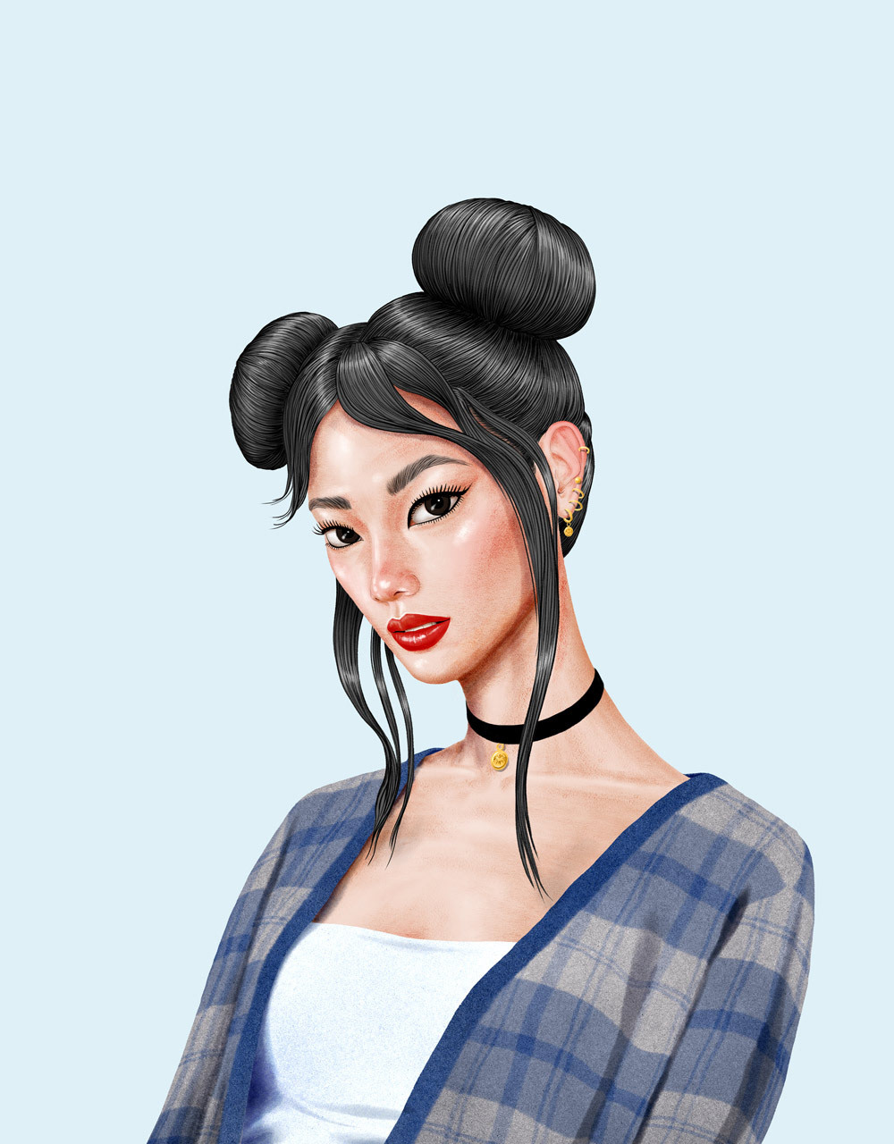 2021 hair trends for Dyson that I did at the end of 2020. FYI Dyson doesn’t just make vacuums they also make beloved $400 hair dryers/stylers and stuff too. We’ve got 90′s space buns, bob with bangs, textured locks, refined grunge, sleek and straight, and the influence of masks