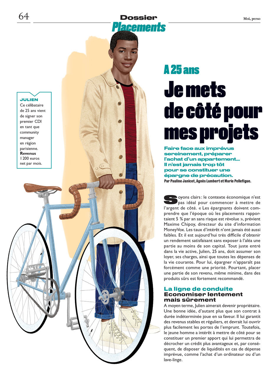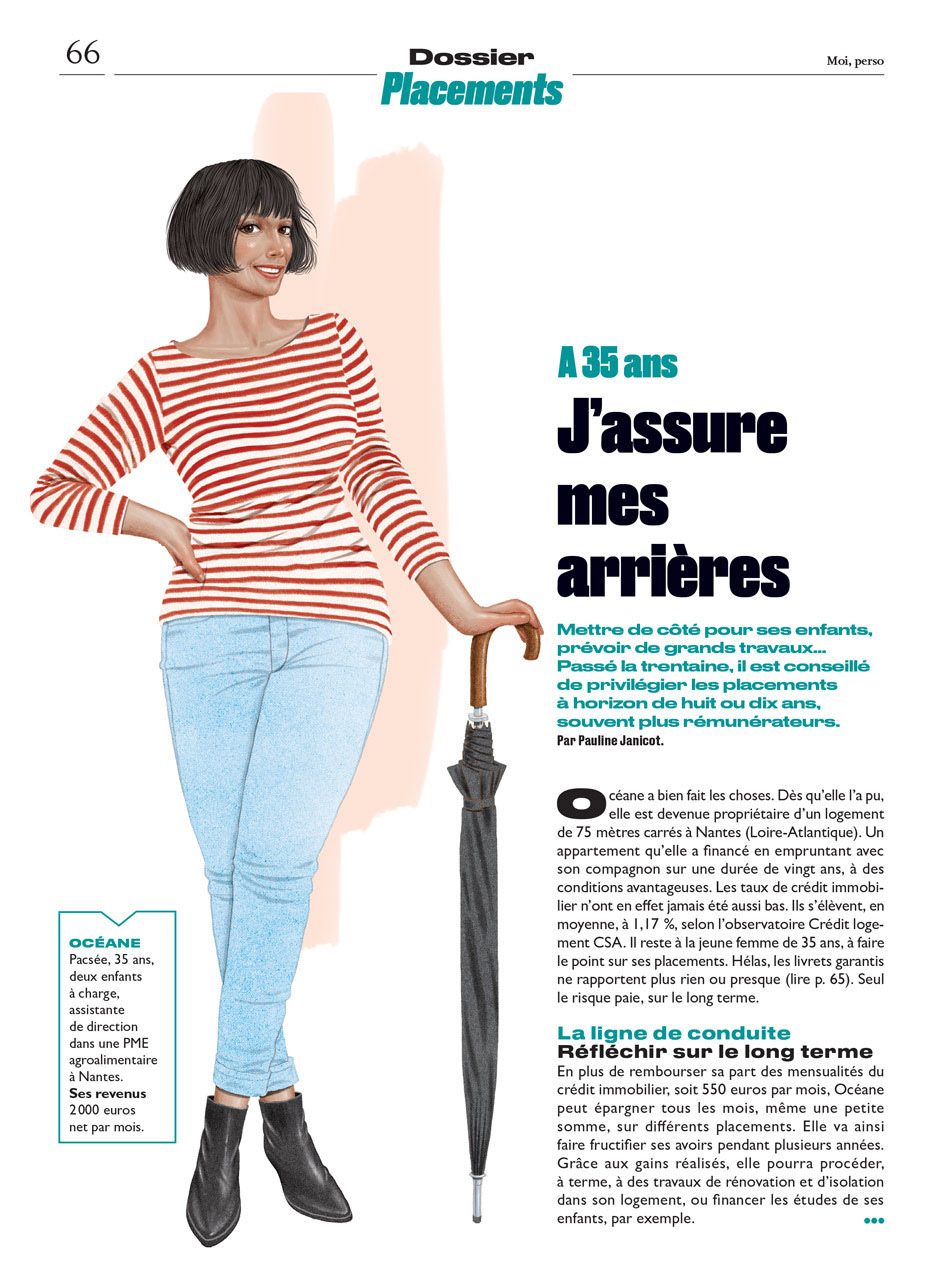 Series of illustrations of people and their financial situations at various ages. For Le Parisien Week-End (a supplement inside Le Parisien)
