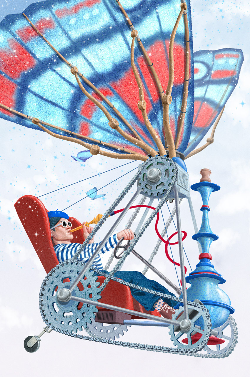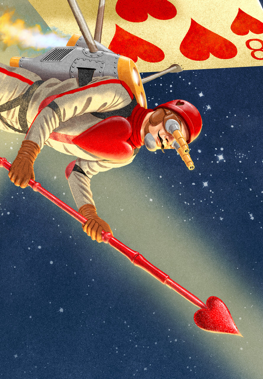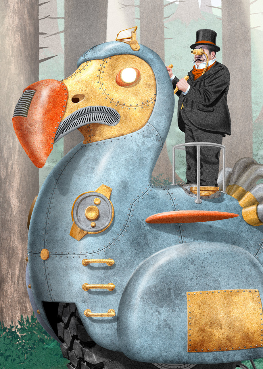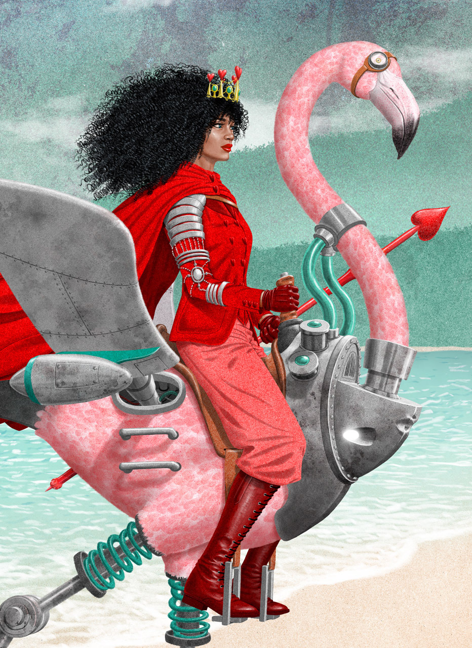 Limited edition artist series bottles for Rabbit Hole Distillery. I reimagined Lewis Carroll’s Alice in Wonderland characters in a sort of Steam Punk vehicle riding world. Alice is all grown up and tatted with Dinah as co-pilot in the front. The Dodo, (who was a metaphor for politicians) has a Boss Tweed type driver atop his destructive steel behemoth. The Caterpillar has emerged from his cocoon even more twee and affectatious than before and flies away in a puff of hookah smoke. Will Tweedle Dee and Tweedle Dum ever make it out of the forest while working against their own interests? The Queen’s Card Guardsman patrols the night skies. The Queen of Hearts is imposing on her half flamingo-half machine. “Dareringer” is single barrel cask strength Kentucky straight bourbon whiskey finished in Pedro Ximénez sherry casks at 118 proof and luckily is my favorite of all their offerings. Available at select retailers in South Carolina and Texas. Posters, T-shirts, and stickers are also available. This was an incredible amount of work conceptualizing and designing and redesigning these characters and backgrounds. Alice in wonderland is beloved and has been reimagined so many times it took so long to develop something new. We had several half starts and reworks but in the end it was worth it, the bottles are beautifully printed and even have spot gloss embossing on the art. Time for me to go have 2 or 3 (or 4) fingers, Cheers!