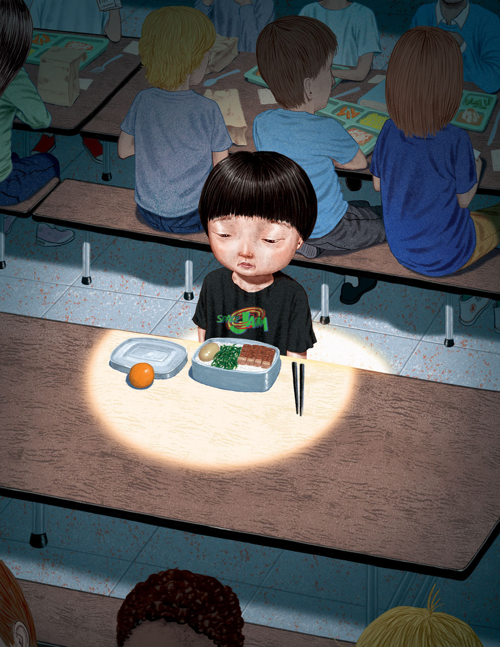 Selected for the Communication Arts annual. Peter Trinh writes about self discovery as he navigates through what the Asian American identity is today. He talks about being ostracized for his Chinese lunch and how he eats dim sum with his friends now. I did 2 full pagers and the two spots are about the typical Asian high school hair cut and seeing Bruce Lee on TV. For Banana Magazine Issue 03. http://www.banana-mag.com/issue-003/
