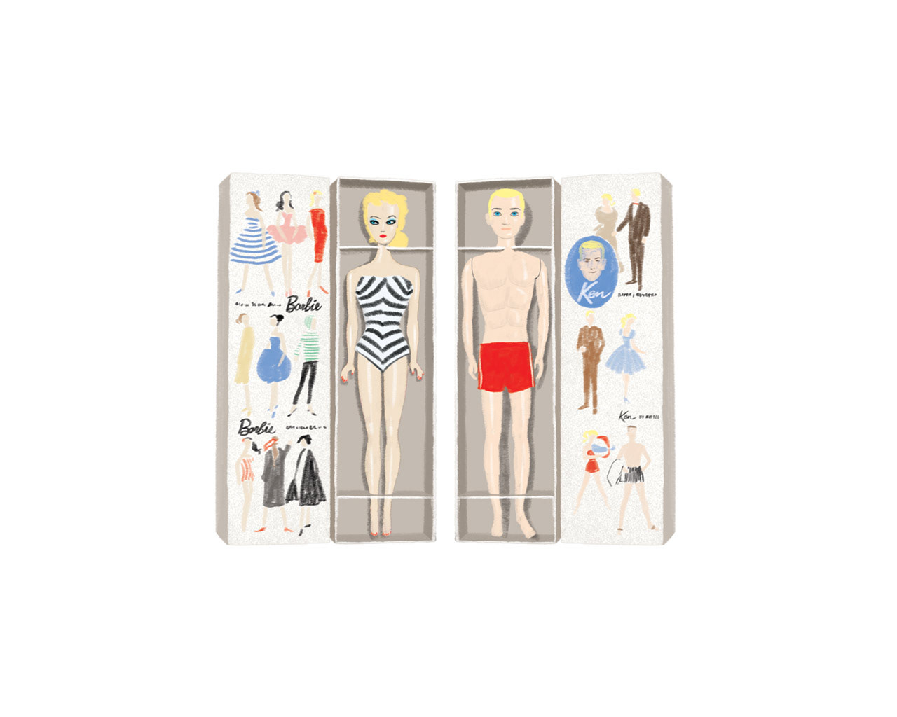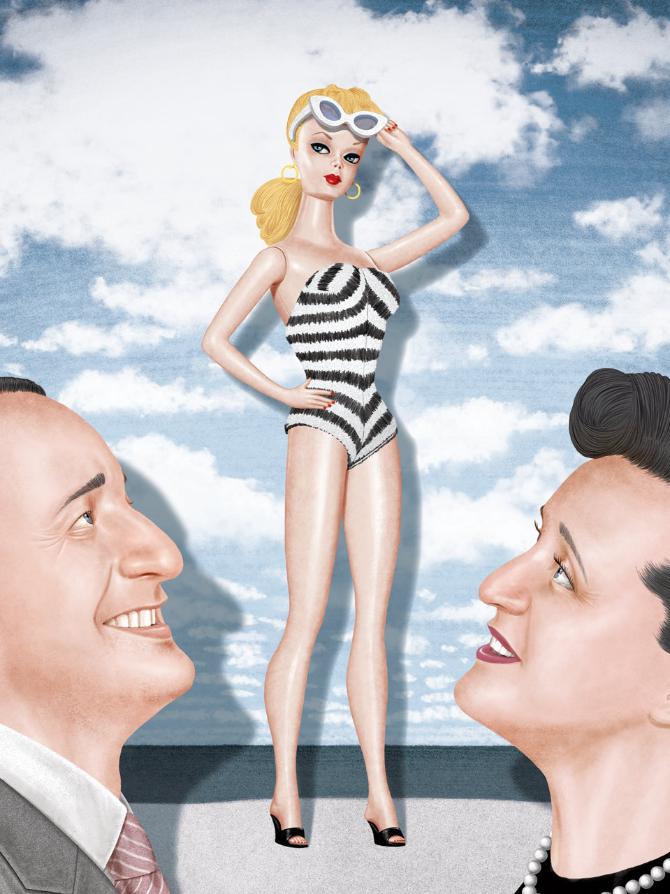 Barbie was born on March 9th, 1959 and it’s her 60th Anniversary. A series of illustrations for Le Parisien Week-End (supplement inside Le Parisien newspaper). Née le 9 mars 1959, la poupée Barbie à 60 ans et pas une ride. C'est en observant sa fille jouer avec une poupée rapportée de Suisse que Ruth Handler imagine la figurine qui fit la renommée de Mattel.
