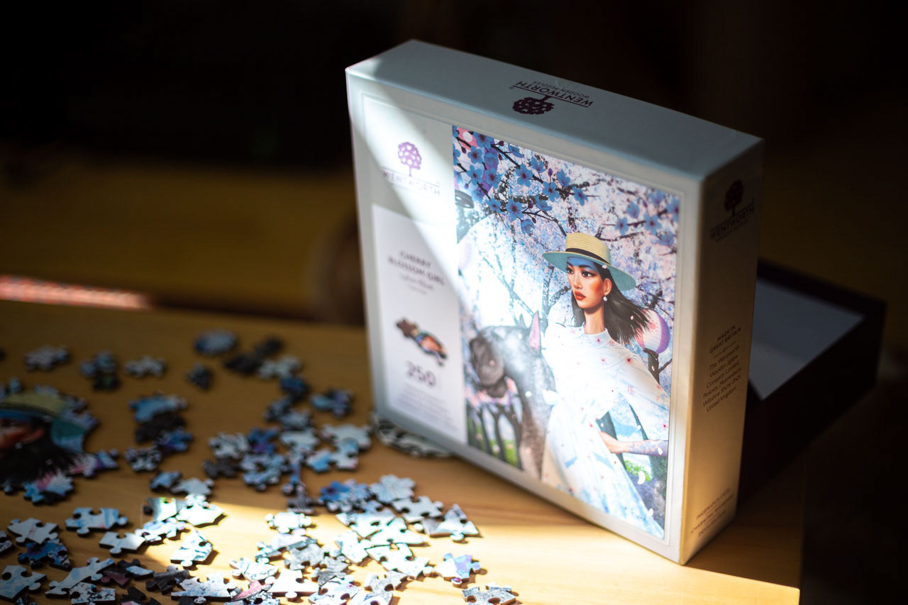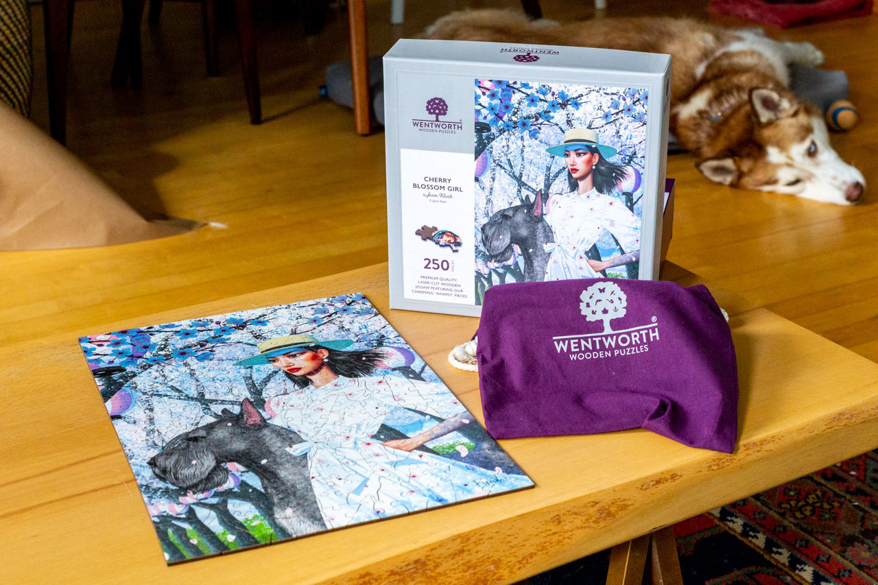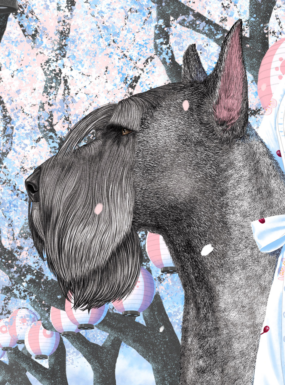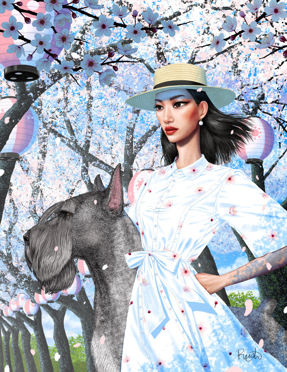 Small British puzzle maker Wentworth puzzles licensed my Cherry blossom girl and Giant Schnauzer illustration. This the finest puzzle i’ve ever seen. Its super thick and laser cut and even has special “whimsy” pieces and unorthodox corners and such that it make a 250 piece puzzle feel like 1000+. With this kind of quality comes a high price, basically $50 for the 250 piece and $100 for the 500 piece but if you want the finest puzzles around Wentworth has got them. Spring has sprung and this woman and her salt and pepper giant Schnauzer are out taking in the cherry blossoms. Dress by Prabal Gurung. The final illustration in my "4 seasons girls with giant breed dogs series". Prints Available here https://society6.com/product/cherry-blossom-girl-and-giant-schnauzer_print?sku=s6-9065861p4a1v2