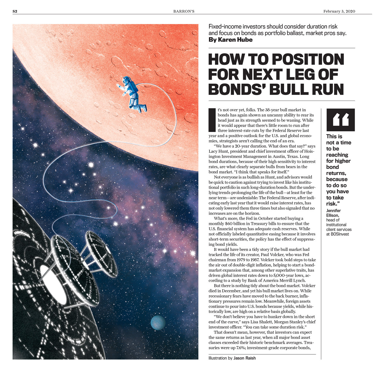 Supplement cover and interior half page for Barron’s. US bond rates have been falling for 30 years, is this the furthest they can go?