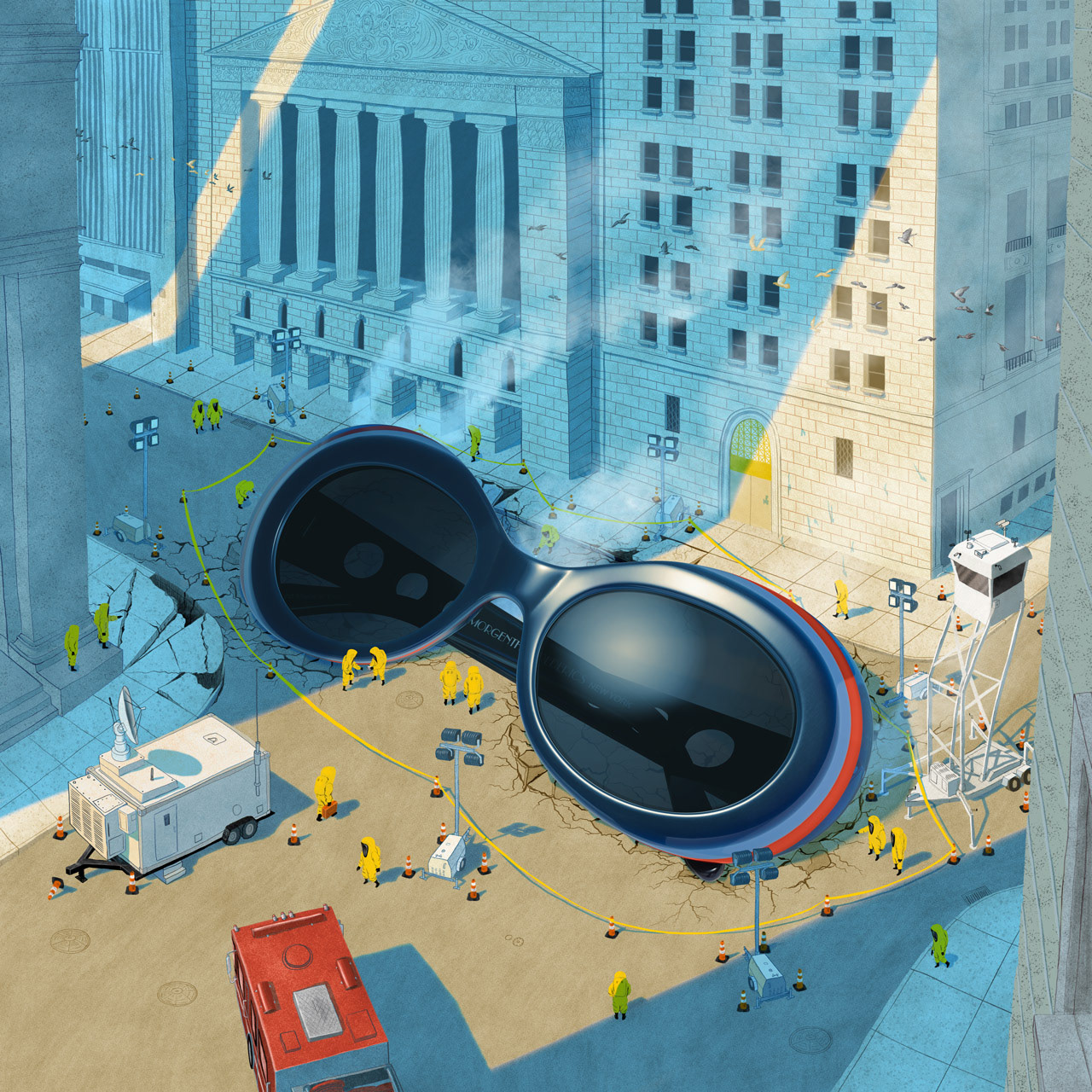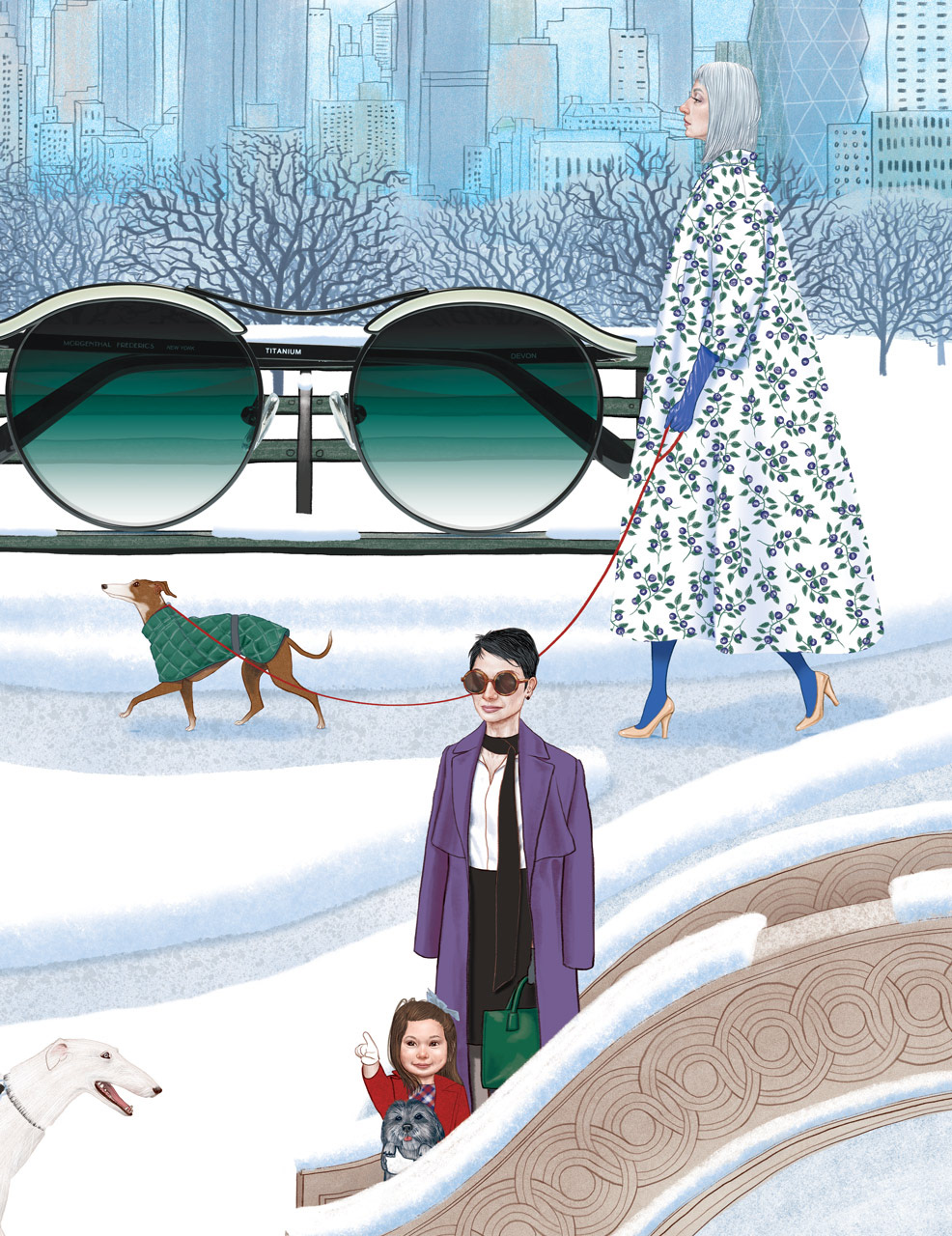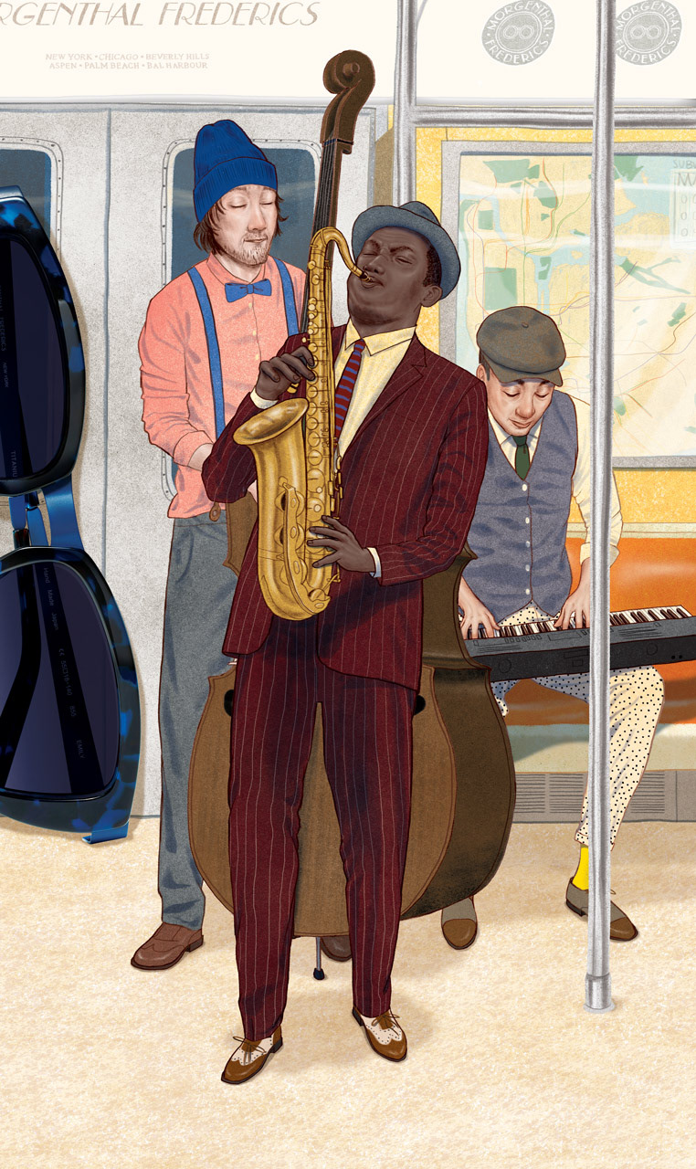 “30 Years of Signature Style”, Luxury eyewear brand Morgenthal Frederics’ 30th anniversary fall advertising campaign. As a New York City brand they wanted scenes around NYC. Photography and art direction by Chris Chieco. I did a total of 8. Most of these are big 36"x36" and took about 60 hours each. A killer workload but I am still alive. It was used for in-store displays, window displays, huge window banners, holiday cards, website, social media, and magazine print ads. Series selected for the 59th annual Society of Illustrators show (Jan 4 - Jan 28th 2017). And talk about luxury some of the frames are $2,000+!