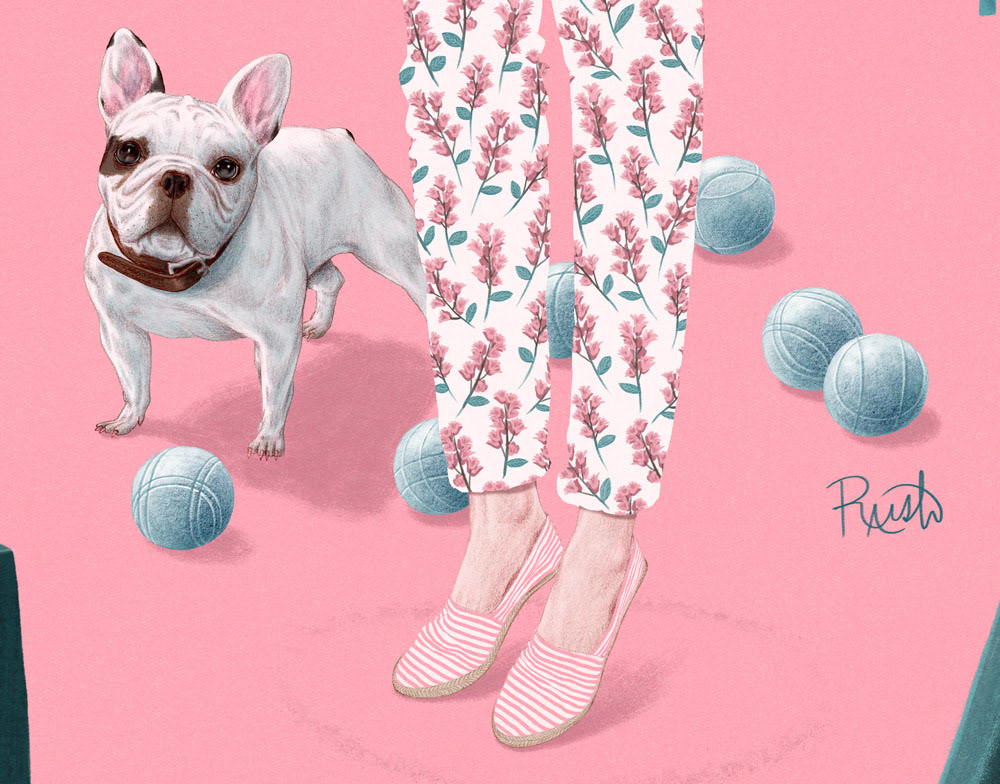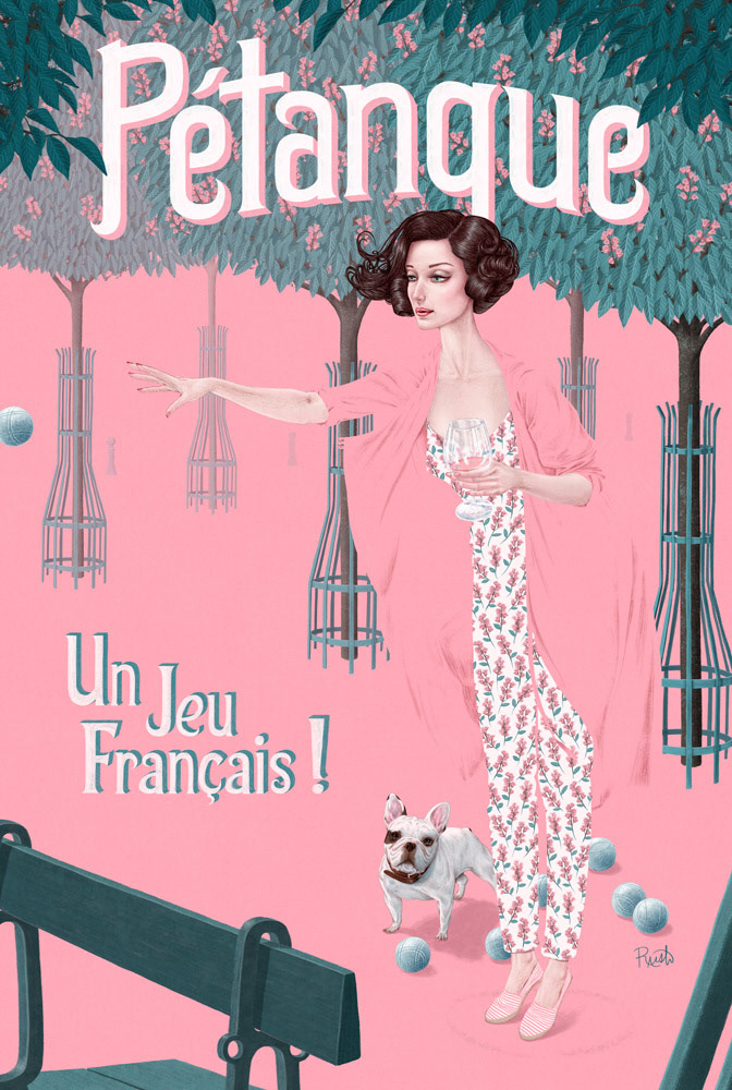 I started playing Pétanque when I lived in Paris and fell in love with it. Big 24x36″ poster size. In a kind of hidden corner in on Ile de la Cité there is Place Dauphine, where the Horse Chestnut trees bloom with pink in the spring and you can find people drinking wine, snacking on glorious French foods, and playing Pétanque. The rules are similar to Bocce but I think it’s more fun because the balls are smaller making it possible to snipe out someone’s ball or other strategic plays. The aim of the game is to throw your metal balls (boules) as close to the smaller wooden cochonnet ball (literally piglet) as you can. As with Bocce it’s traditionally been old guys playing outside but like with all things old the hipsters have taken to it also. Shout out to C. Coles Philips. Happy Pétanque’ing! Prints available here https://society6.com/product/ptanque_print#s6-4514349p4a1v3
