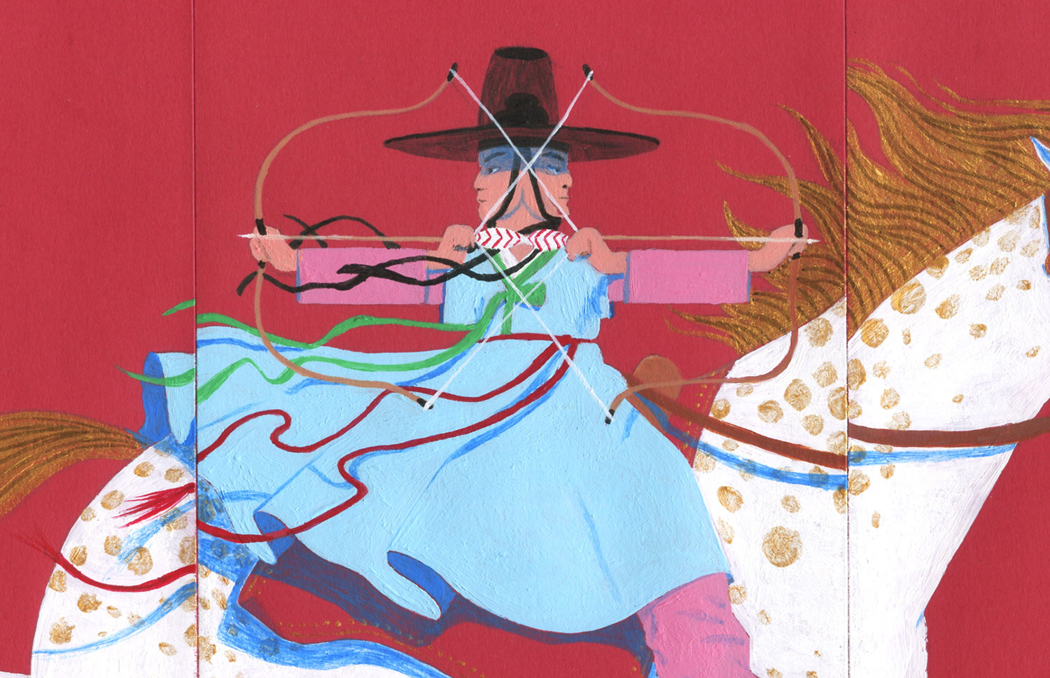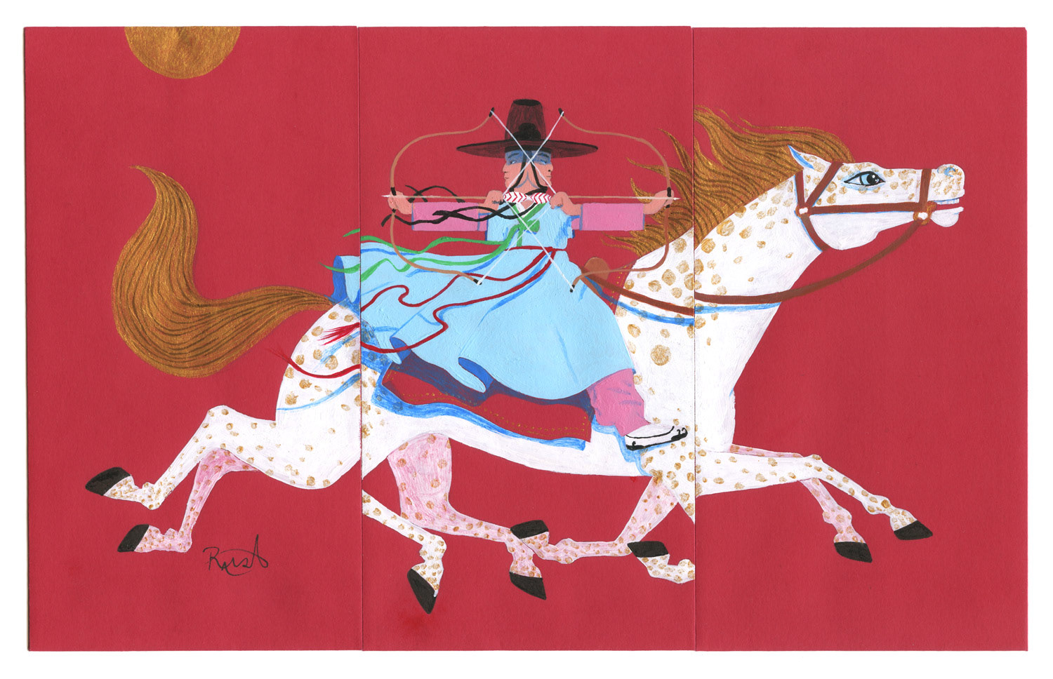 Year of the Horse triptych. Acrylic on Chinese red envelope. Sometimes personal progress isn't forward