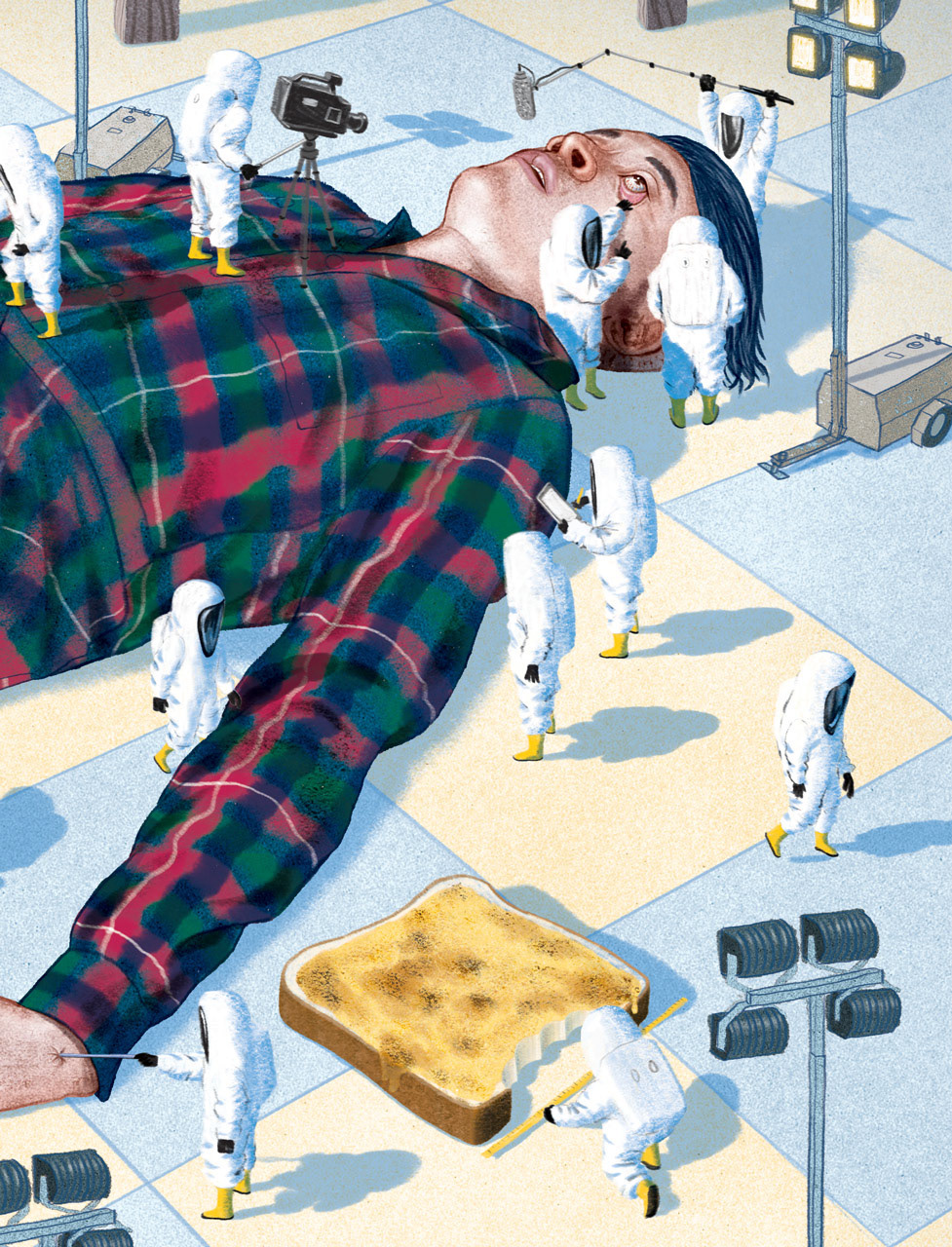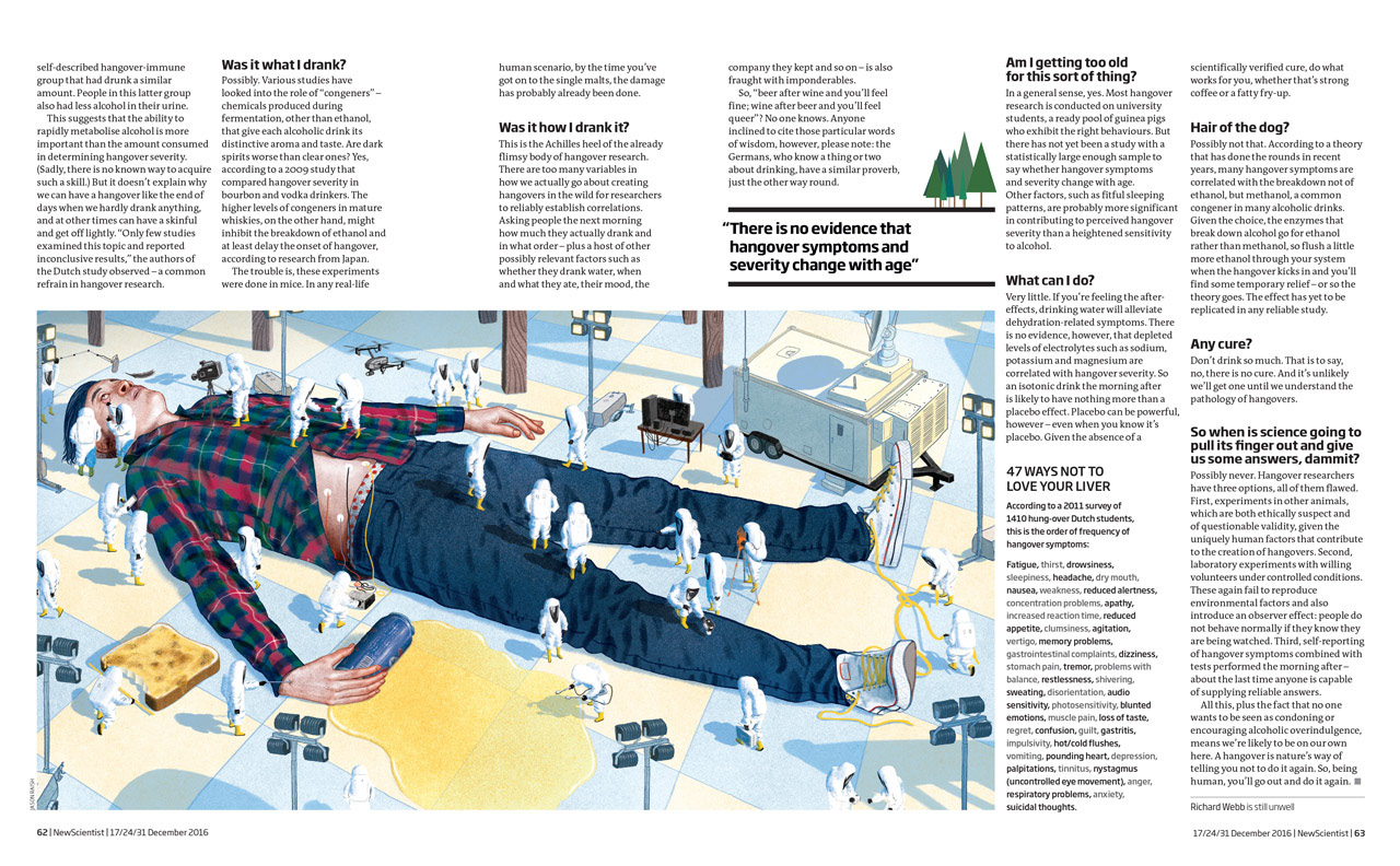 For a story about hangover science. Since it’s a British publication I have his drunk food of choice as cheesy toast and a can of Kronenburg1664. Made a version with the eye looking over in case I looked too dead (Neon Genesis Evangelion vibes).