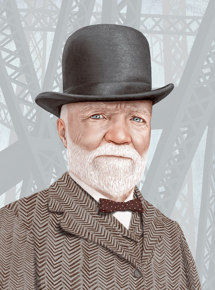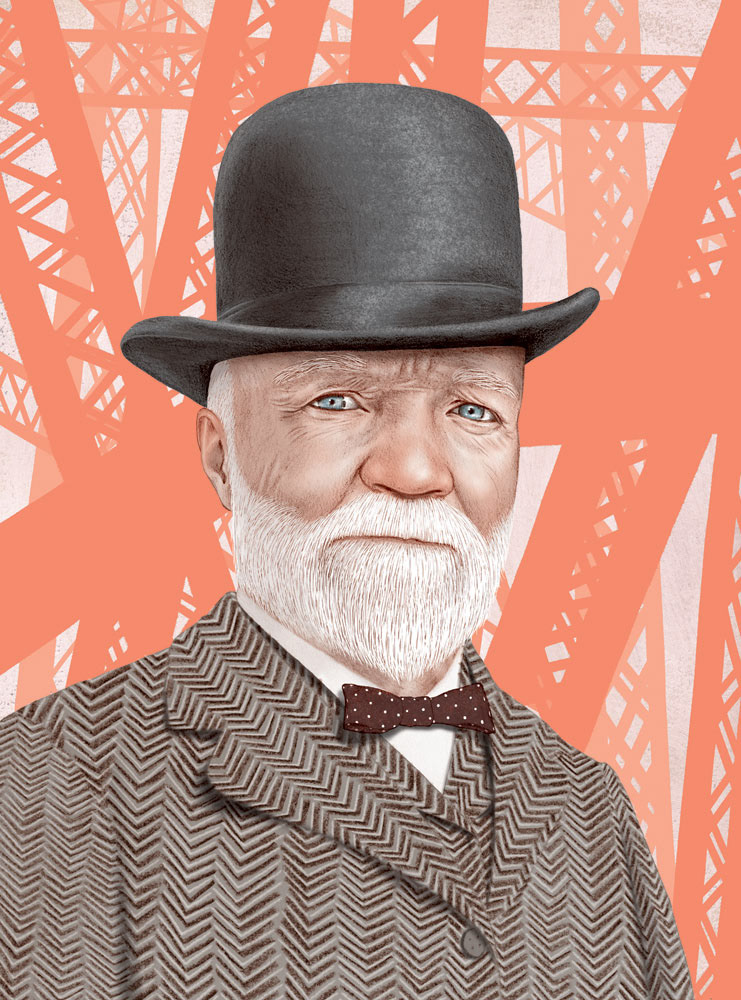 Andrew Carnegie for Smithsonian’s collector’s edition “100 Most Significant Americans of All Time” issue. Carnegie is famous in part for his steel empire. The salmon colored one is an alternate color version.