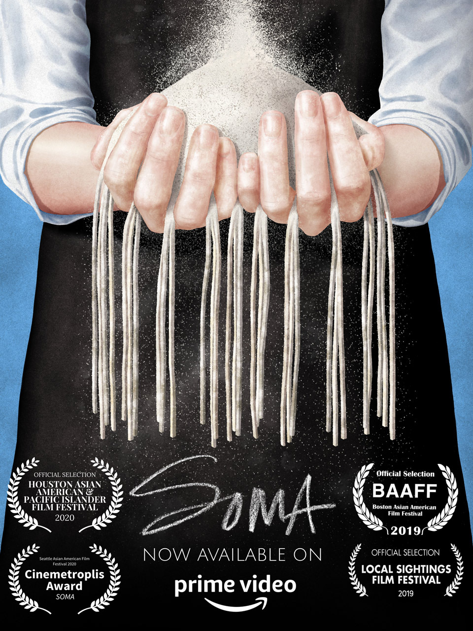 24x36" poster for “Soma” a short film by Peter Trinh about Mutsuko Soma who hand mills and hand makes soba noodles at her restaurant Kamonegi in Seattle. Typography by Jennifer Kyung Yoo. It’s 11 minutes long and streaming on Amazon Prime Video.