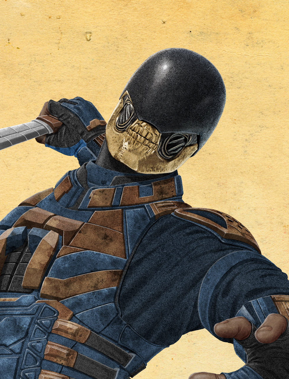 Officially licensed 18x24" Giclée prints, edition of 100 for sale at bottleneckgallery.com Jason Raish continues his Suicide Squad portrait series with Bloodsport and Peacemaker. James Gunn’s The Suicide Squad is one of our favorite comic movies of the year, and Idris Elba and John Cena’s roles are a large part of that. Jason’s portraits are full of fascinating texture work and lighting.