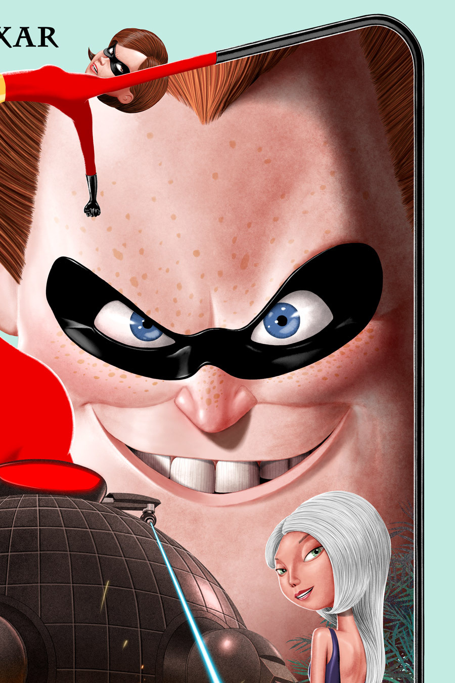 Celebrating the 20th anniversary of Disney and Pixar’s first real foray into the capes and criminals genre. In collaboration with Gallery Pulse and Bottleneck Gallery. 4 versions, each in an edition of 75, fine art giclee, 24x36" On sale friday april 19th, 2024 at bottleneckgallery.com