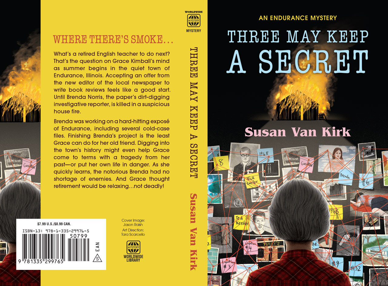 Cover Art Susan Van Kirk's trio of mystery novels for Harlequin: Three May Keep A Secret, Marry In Haste, and Death Takes No Bribes.