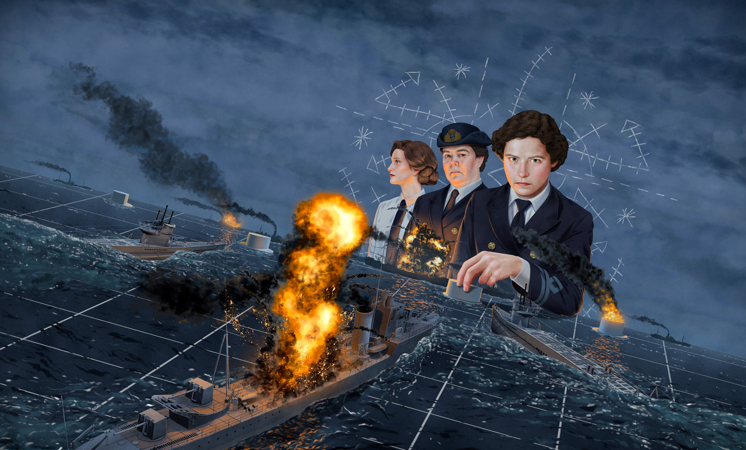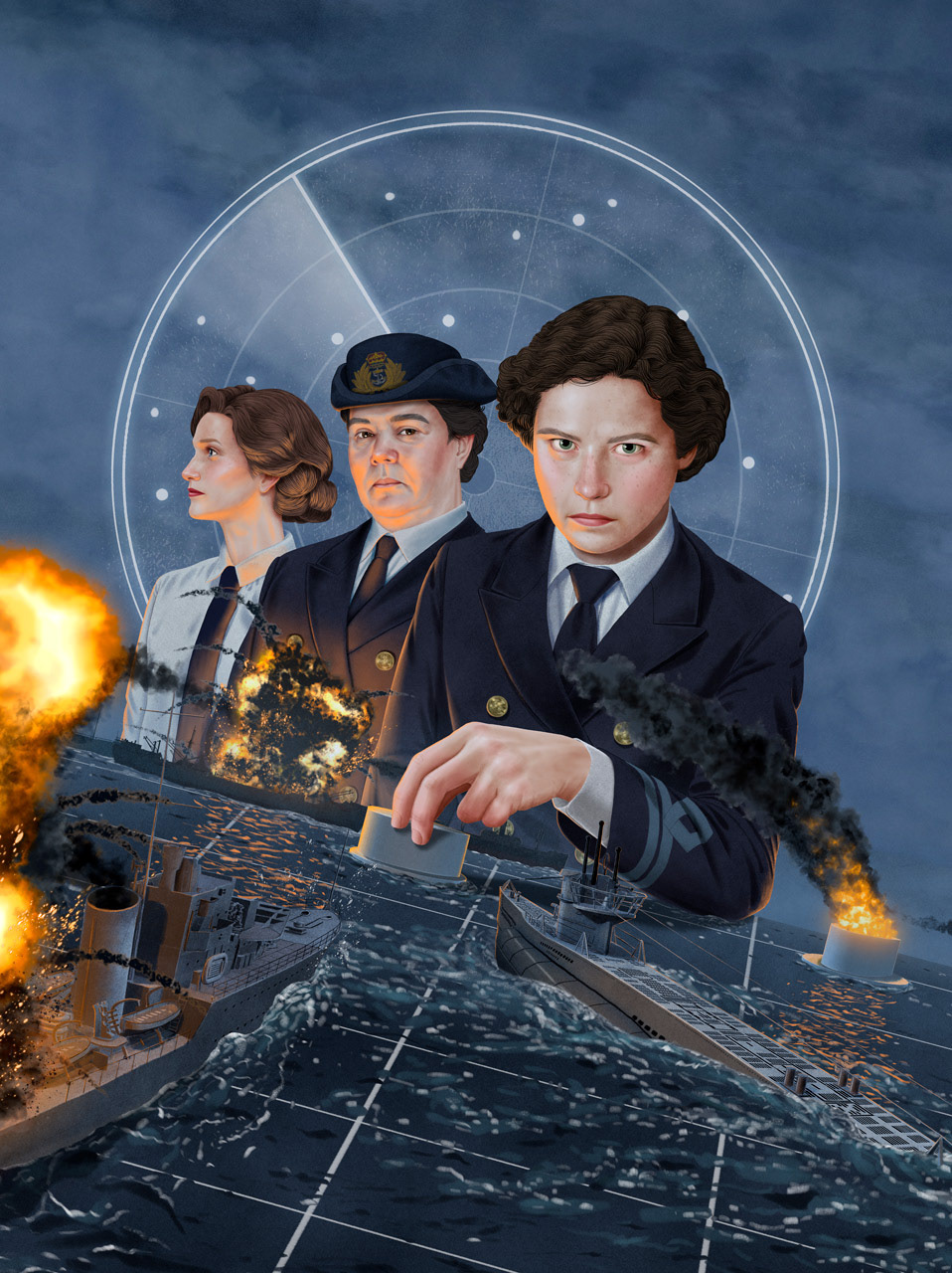 My first job of the year was this huge key art (18,750px aka 62.5 inches wide!) for U-boat Wargamers on Sky History UK. January 1943: Britain is on the brink of starvation from ruthless Nazi attacks on merchant ships. The Navy cannot spare any men. Enter the WRNS (Women’s Royal Navy Service) to war game the tactics to defeat the enemy U-Boats.