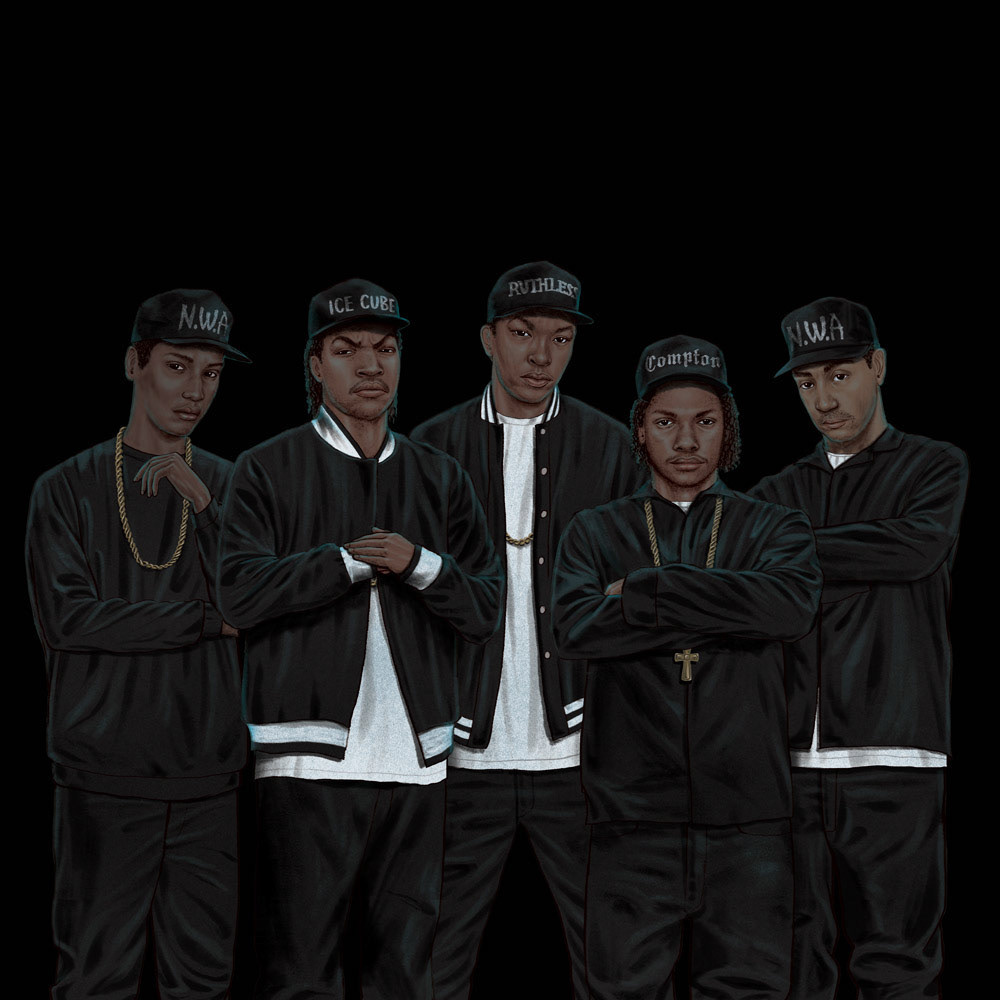 There aren't many 10 out of 10 star records but N.W.A.'s 1988 album Straight Outta Compton is one of them. For a group show in Singapore at Kult Gallery. MC Ren, Ice Cube, Dr. Dre, Easy-E, DJ Yella