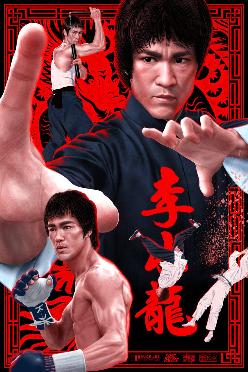 Bruce Lee Foundation charity poster with Shoe Palace and Bottleneck Gallery