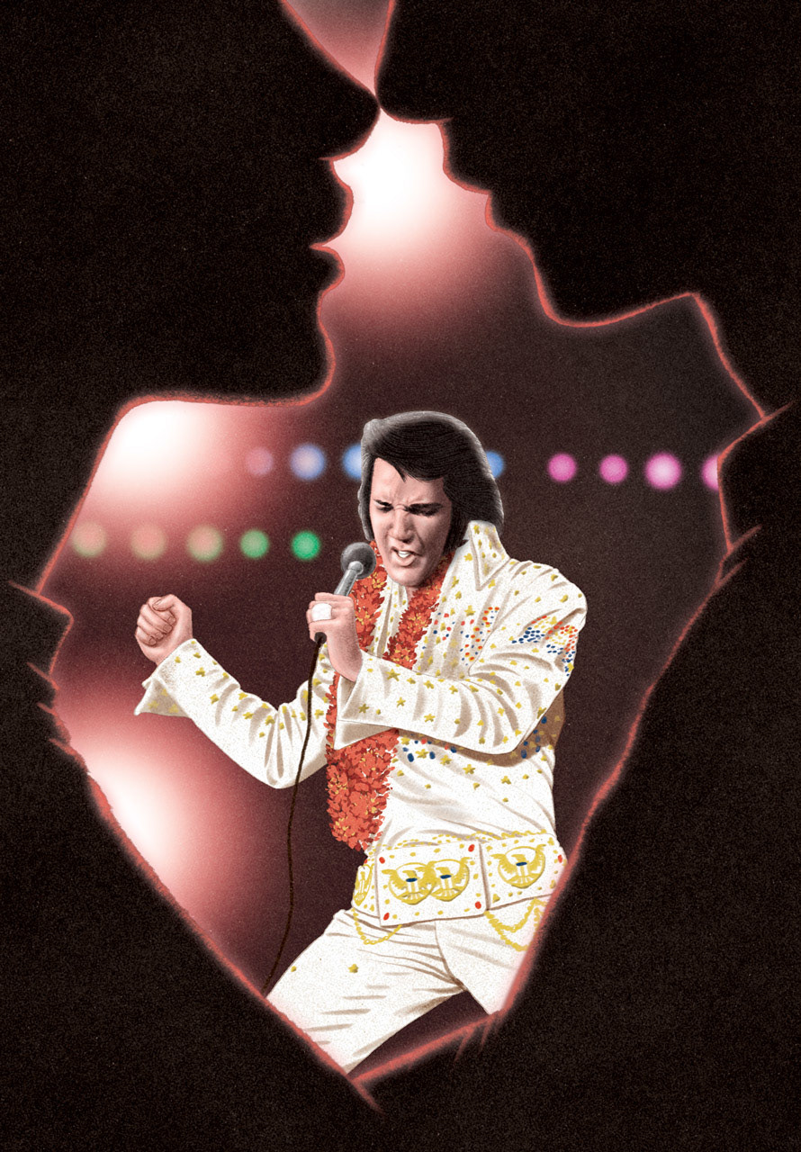 Elvis’ 1973 concert in Hawaii is one scene in Tom Fowler’s time traveling romantic comedy ‘Suspicious Minds’, where the couple tries to patch up their failing relationship by going on a time travel vacation. For the Radio Times in London.
